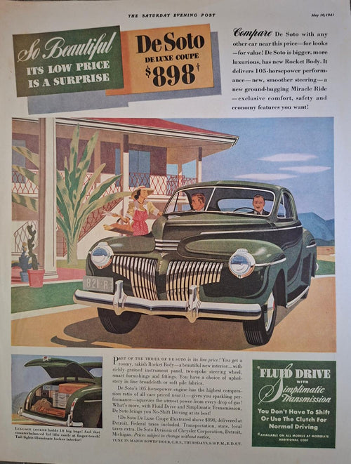 This 1946 Pontiac Advertisement appeared in the Saturday Evening Post. It's approximate size is 11 1/2 inches by 13 3/4 inches. Great item to display!